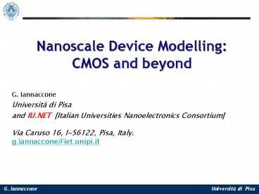 <Notice: Removed> Nanoscale Device Modelling: CMOS and beyond PowerPoint PPT Presentation