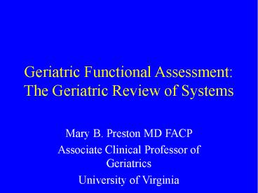 <Notice: Removed> Geriatric Functional Assessment: The Geriatric Review of Systems PowerPoint PPT Presentation