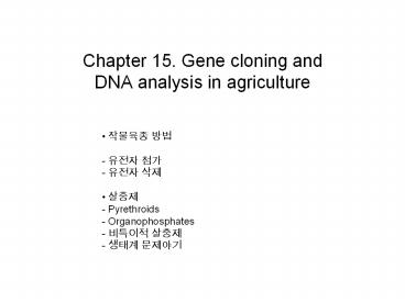 Chapter 15. Gene cloning and DNA analysis in agriculture PowerPoint PPT Presentation