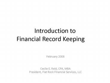 Title: Introduction to Financial Record Keeping
