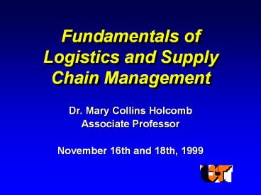 <Notice: Removed> Fundamentals of Logistics and Supply Chain Management PowerPoint PPT Presentation