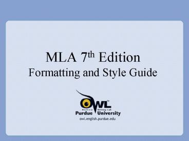 <Notice: Removed> MLA 7th Edition Formatting and Style Guide PowerPoint PPT Presentation