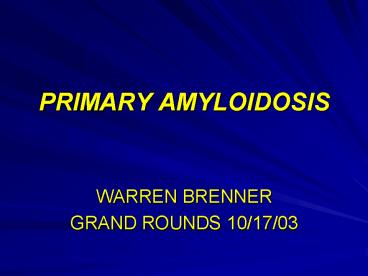 of Primary Systemic Amyloidosis Morie A. Gertz,