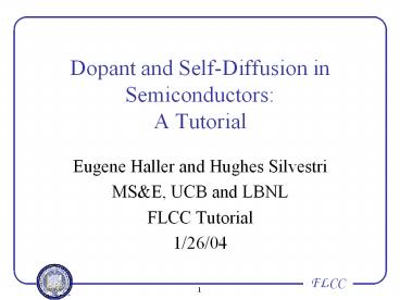 Title: Dopant and Self-Diffusion in Semiconductors: A Tutorial
