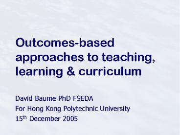<Notice: Removed> Outcomes-based approaches to teaching, learning PowerPoint PPT Presentation