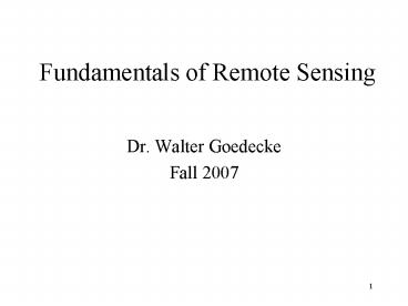 6OVERVIEW OF REMOTE SENSING Remote Sensing from