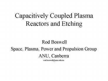 Title: Capacitively Coupled Plasma Reactors and Etching