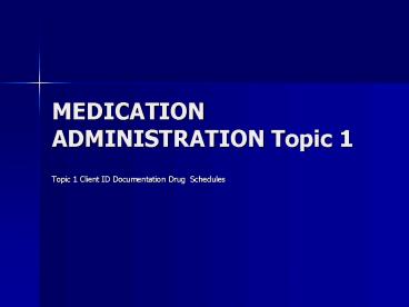 Title: MEDICATION ADMINISTRATION Topic 1
