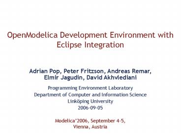 - Adrian Pop, Peter Fritzson, Andreas Remar, Elmir