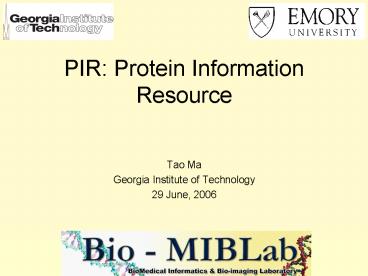 PIR: Protein Information Resource PowerPoint PPT Presentation