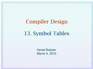 <Notice: Removed> Compiler Design 13. Symbol Tables PowerPoint PPT Presentation