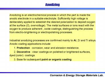 <Notice: Removed> Anodizing PowerPoint PPT Presentation