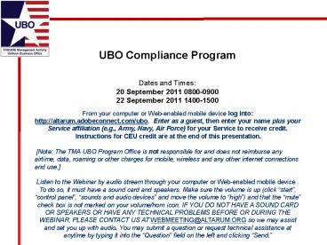 <Notice: Removed> UBO Compliance Program PowerPoint PPT Presentation