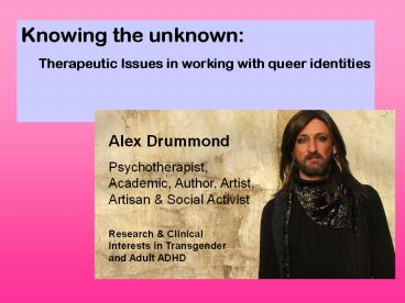 1Knowing the unknown Therapeutic Issues in