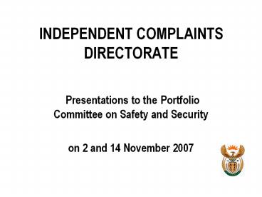 <Notice: Removed> INDEPENDENT COMPLAINTS DIRECTORATE PowerPoint PPT Presentation