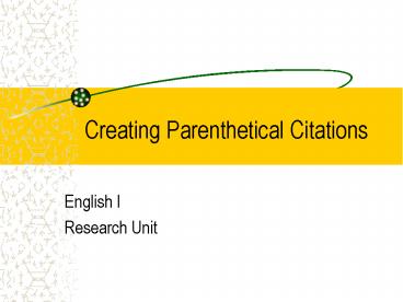<Notice: Removed> Creating Parenthetical Citations PowerPoint PPT Presentation