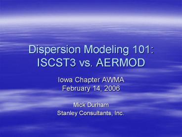 Title: Dispersion Modeling 101: ISCST3 vs. AERMOD