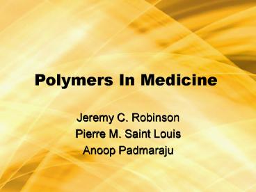 <Notice: Removed> Polymers In Medicine PowerPoint PPT Presentation