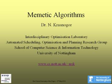 <Notice: Removed> Memetic Algorithms PowerPoint PPT Presentation