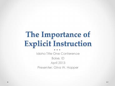 <Notice: Removed> The Importance of Explicit Instruction PowerPoint PPT Presentation