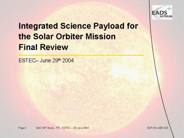 interconnect architecture. - Already base lined for SOP and Bepi-Columbo.