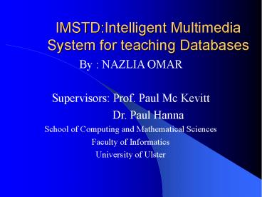 <Notice: Removed> IMSTD:Intelligent Multimedia System for teaching Databases PowerPoint PPT Presentation