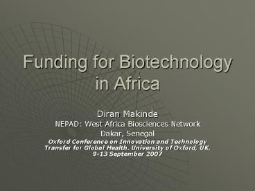 Title: Funding for Biotechnology in Africa