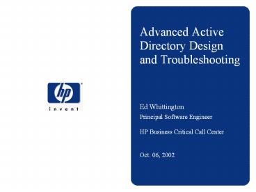 <Notice: Removed> Advanced Active Directory Design and Troubleshooting PowerPoint PPT Presentation