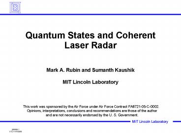 Quantum States and Coherent Laser Radar PowerPoint PPT Presentation
