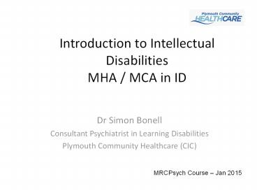 Title: Introduction to Intellectual Disabilities MHA / MCA in ID