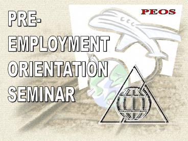 <Notice: Removed> PRE EMPLOYMENT ORIENTATION SEMINAR PowerPoint PPT Presentation