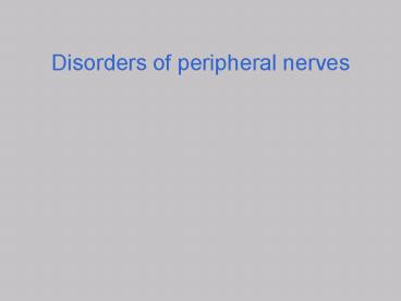 Title: Disorders of peripheral nerves