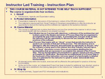<Notice: Removed> Instructor Led Training - Instruction Plan PowerPoint PPT Presentation