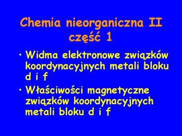 <Notice: Removed> Chemia nieorganiczna II czesc 1 PowerPoint PPT Presentation