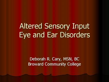 Altered Sensory Input Eye and Ear Disorders PowerPoint PPT Presentation
