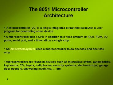 <Notice: Removed> The 8051 Microcontroller Architecture PowerPoint PPT Presentation
