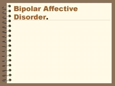 Bipolar Affective Disorder. PowerPoint PPT Presentation
