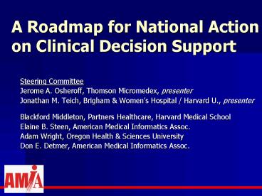 1A Roadmap for National Action on Clinical