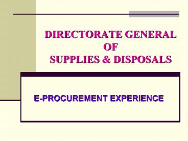 Title: DIRECTORATE GENERAL OF SUPPLIES