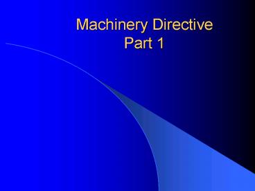 Machinery Directive Part 1 PowerPoint PPT Presentation