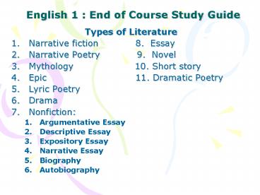 English 1 : End of Course Study Guide PowerPoint PPT Presentation