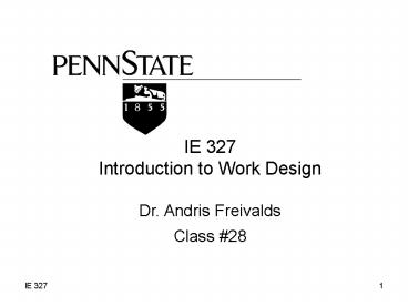 IE 327 Introduction to Work Design Dr. Andris