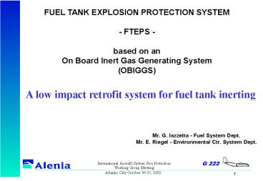- The OBIGGS, main component of Fuel Tank Explosion