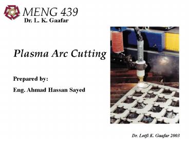 Plasma Arc Cutting PowerPoint PPT Presentation