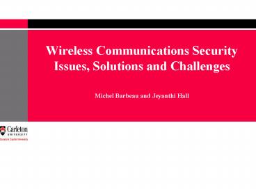 Title: Wireless Communications Security Issues, Solutions and Challenges