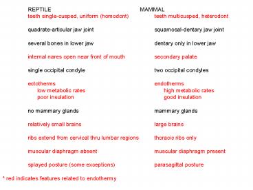 1 REPTILE MAMMAL teeth single-cusped,