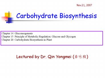 Title: Carbohydrate Biosynthesis