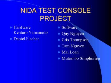 <Notice: Removed> NIDA TEST CONSOLE PROJECT PowerPoint PPT Presentation