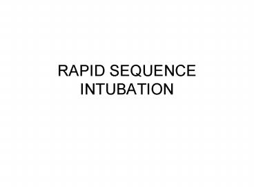 RAPID SEQUENCE INTUBATION PowerPoint PPT Presentation