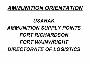 Wainwright Ammunition Supply Point Procedures - REFERENCES AR 710-2, AR 190-11, DA PAM 710-2-1,